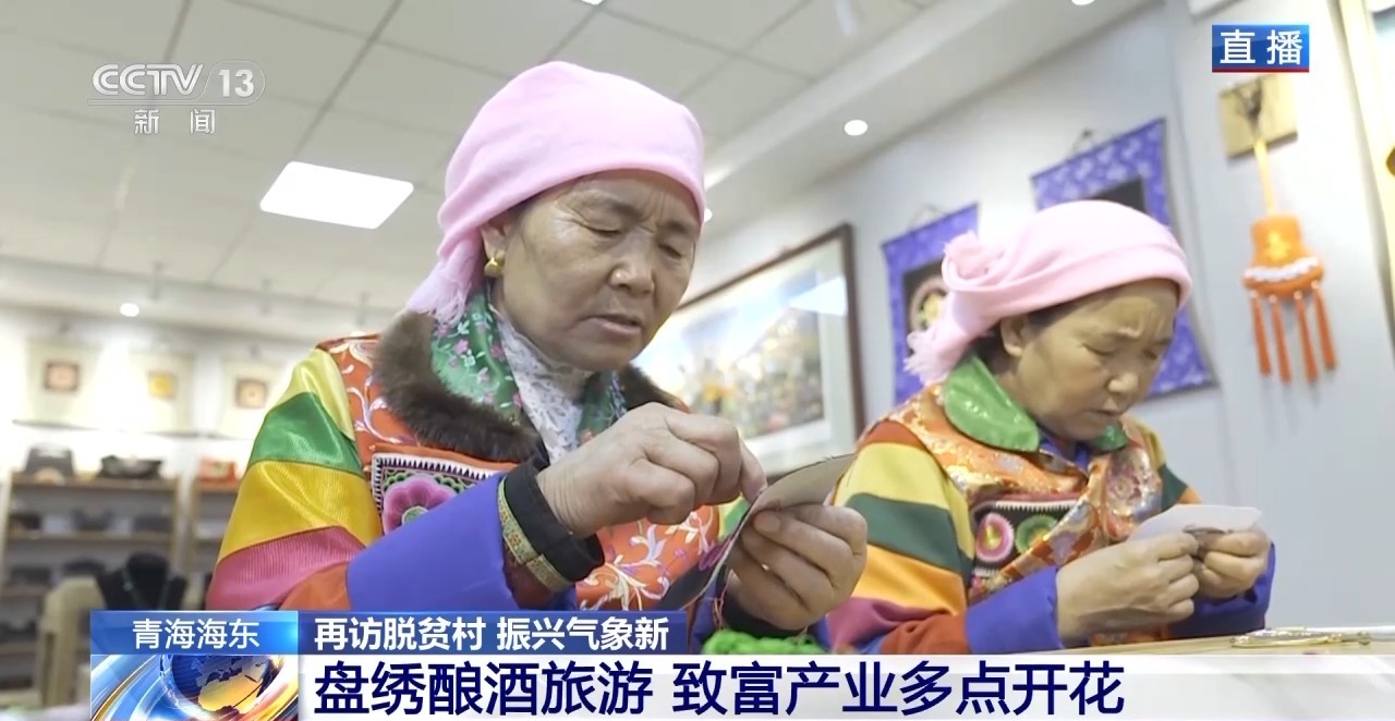 不僅是光伏發(fā)電,近幾年,村里因地制宜發(fā)展起土族盤繡、古法釀酒、鄉(xiāng)村旅游等多個致富產業(yè),還通過電商直播帶貨平臺,推廣村里自產的青稞酒、中藥材等農特產品,讓村民實現(xiàn)就地就近就業(yè)的同時,也讓產品的銷路越走越遠。