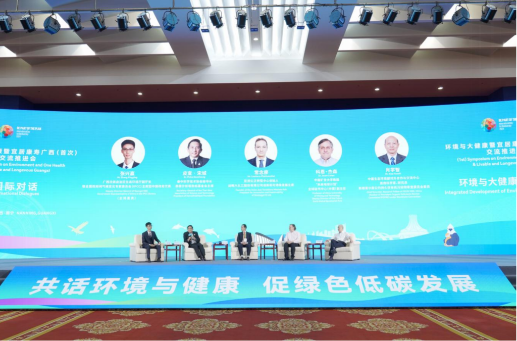 2024年5月18日,張興贏(左一)在環(huán)境與大健康暨宜居康壽廣西交流推進會上主持國際對話會。新華社發(fā)