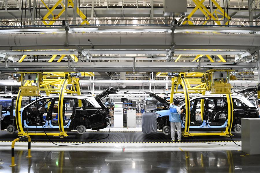這是在位于重慶市兩江新區(qū)的賽力斯汽車超級(jí)工廠智能化生產(chǎn)作業(yè)現(xiàn)場(chǎng)(2024年6月7日攝)。新華社記者 王全超 攝