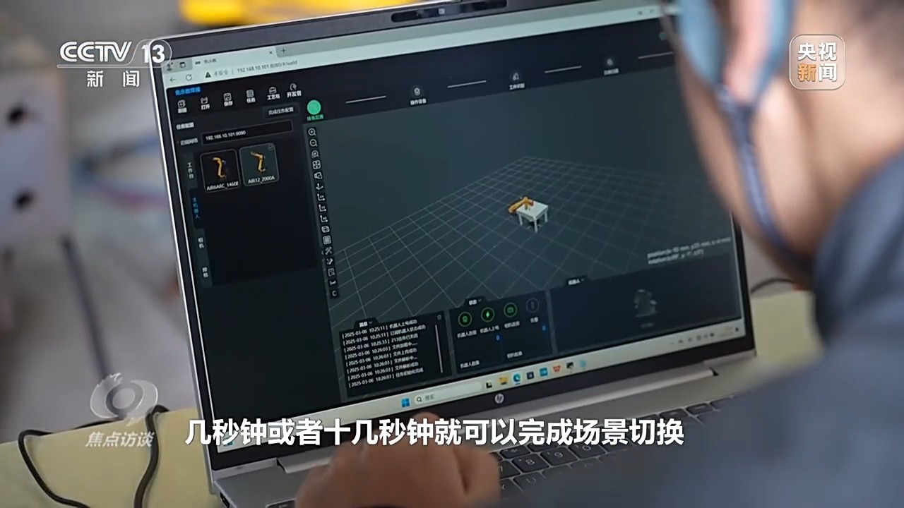 智能機器人工程師 王晨光:如果要換活兒或者換產(chǎn)線,那就需要人工去重新編程,最簡單的編程工作也需要花費半天或者一天的時間,還有調(diào)試,而繹焊機器人加持了人工智能,幾秒鐘或者十幾秒鐘就可以完成場景切換,能夠適應(yīng)個性化的復(fù)雜生產(chǎn)場景。
