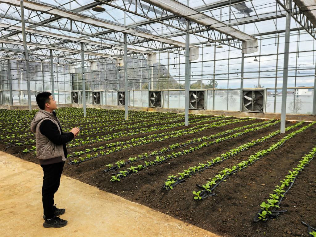 在廣西賀州市平桂區(qū)國家現(xiàn)代農(nóng)業(yè)產(chǎn)業(yè)園品種篩選適應(yīng)棚內(nèi),技術(shù)人員陳愈璋輕觸手機(jī),蔬菜大棚的內(nèi)遮陽網(wǎng)緩緩開啟?!霸绱簳r節(jié)氣溫波動較大,有了物聯(lián)網(wǎng)技術(shù),可以隨時調(diào)整遮陽網(wǎng)開合,效率提高了很多?!标愑罢f。