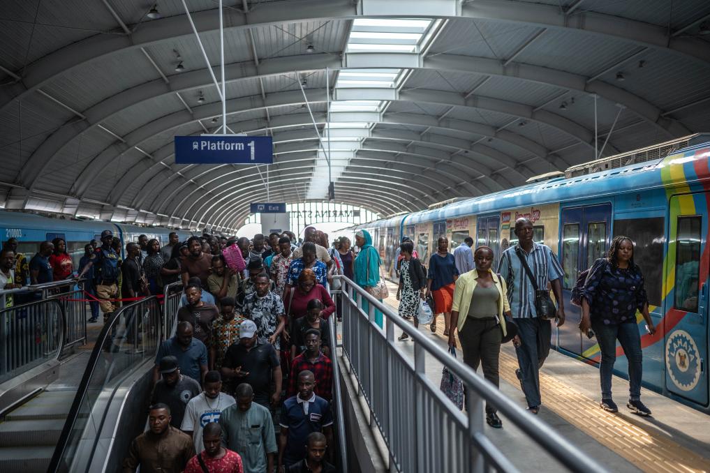 2024年12月2日,在尼日利亞拉各斯,乘客走在輕軌藍(lán)線的站臺上。拉各斯輕軌藍(lán)線是西非地區(qū)首條由中國企業(yè)自主設(shè)計、建造、施工、運營的電氣化城市軌道交通項目。新華社記者 王冠森 攝