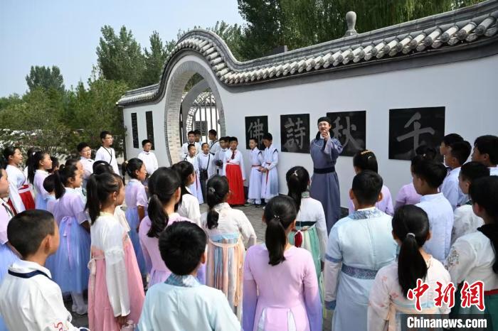 來自省內(nèi)外的學(xué)生在王維水墨小鎮(zhèn)參加研學(xué)活動。(資料圖片) 吳遵民 攝