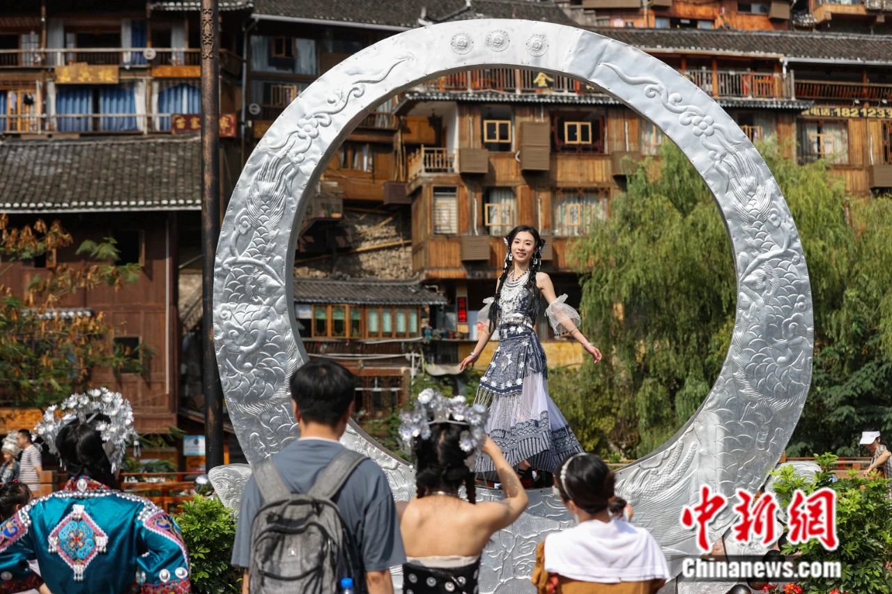 游客在貴州西江千戶苗寨游玩。 中新社記者 瞿宏倫 攝