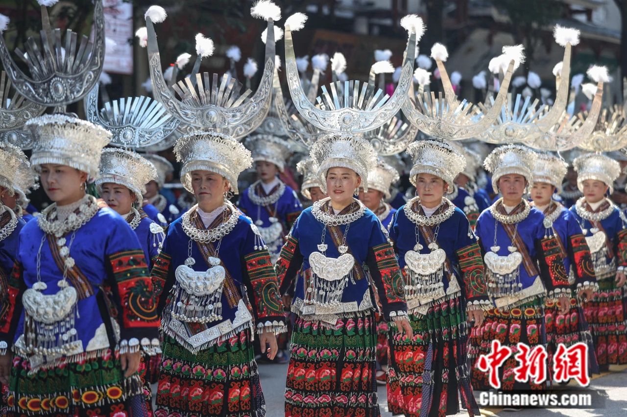 貴州臺(tái)江:民眾著苗族盛裝巡游歡度“姊妹節(jié)”。中新社記者 瞿宏倫 攝