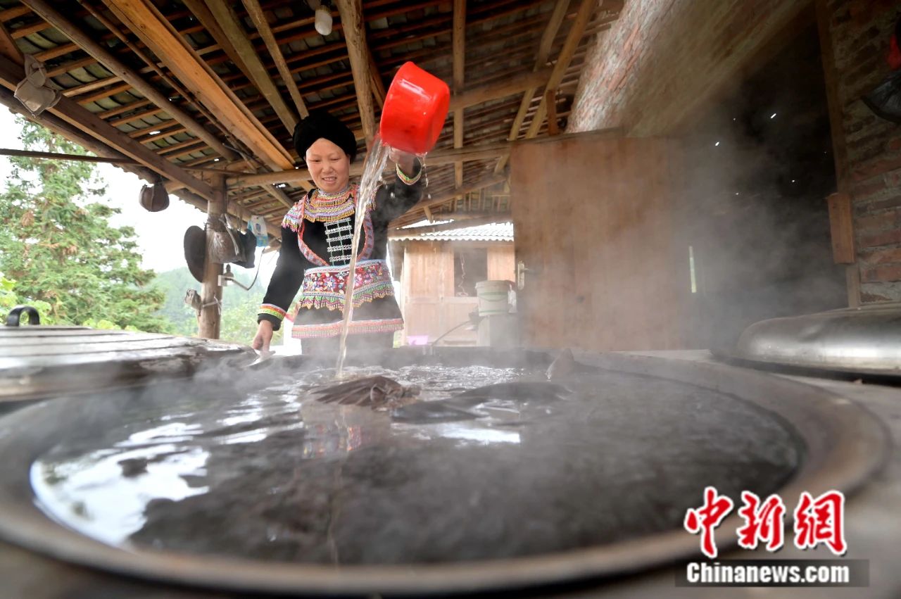 貴州省從江縣丙妹鎮(zhèn)大塘村五里坡瑤寨的村民在舀藥水準(zhǔn)備給客人洗浴。吳德軍 攝