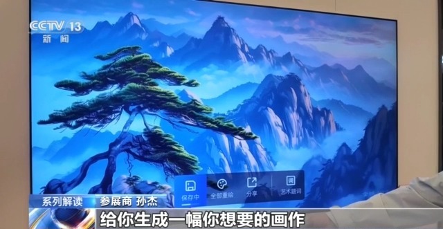 參展商 孫杰:只要說出你想要的畫面內(nèi)容,它就會(huì)很短的時(shí)間給你生出一幅你想要的畫作。既可以作為自己的畫作在電視上欣賞,也可以通過微信掃碼復(fù)制到電腦手機(jī)上作為桌面。