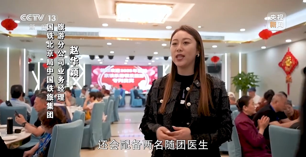 國鐵北京局中國鐵旅集團(tuán)旅游分公司業(yè)務(wù)經(jīng)理 趙華穎:像我們的包廂是在原有硬臥基礎(chǔ)上鋪位增加了八厘米的寬度,去掉了中鋪,只有上鋪和下鋪。上鋪我們?cè)黾恿嗽S多扶手,為了叔叔阿姨的健康考慮,還會(huì)配備兩名隨團(tuán)醫(yī)生,全程提供緊急救助。