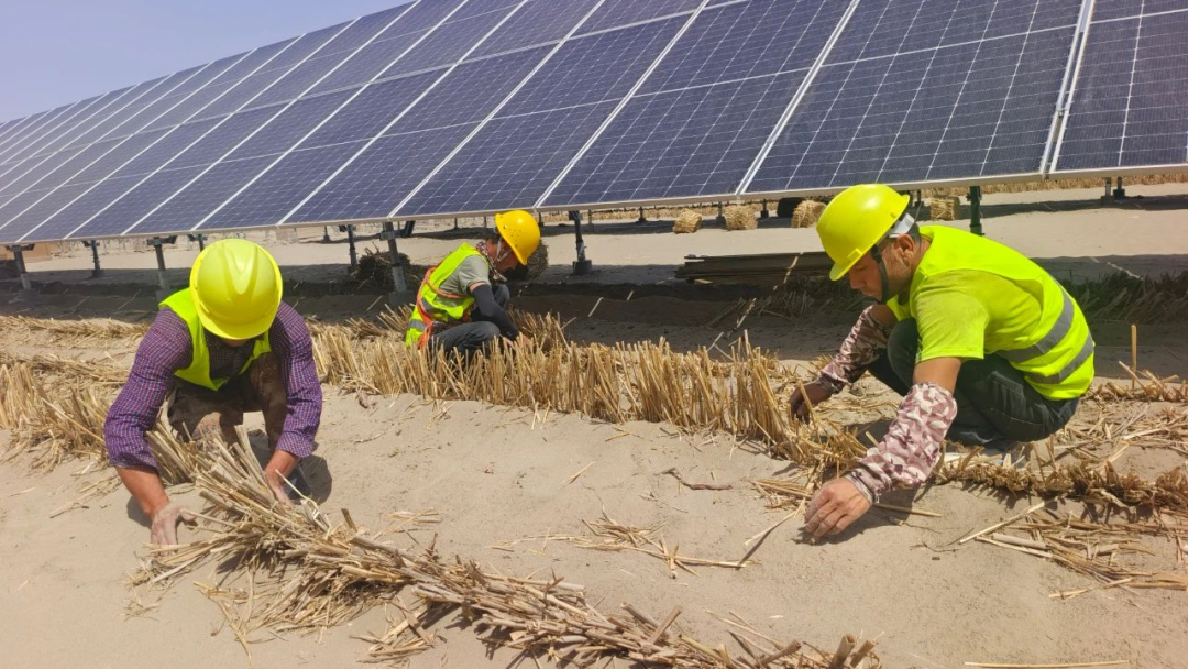 光伏板不僅可以作為發(fā)電設(shè)備,其鋪助設(shè)施還能有效降低地表風(fēng)速、減少風(fēng)蝕,進(jìn)而穩(wěn)定沙土、防止沙丘移動(dòng)。此外,光伏板能有效減少地表水分蒸發(fā),有利于沙漠植被生長(zhǎng)。地區(qū)通過(guò)招商引資方式,引進(jìn)中電建集團(tuán)公司,在沙雅縣規(guī)劃實(shí)施“光伏+治沙”2萬(wàn)畝,建設(shè)25萬(wàn)千瓦光伏產(chǎn)業(yè)園區(qū)低碳轉(zhuǎn)型新能源項(xiàng)目。項(xiàng)目建成后,發(fā)電固沙一舉兩得。