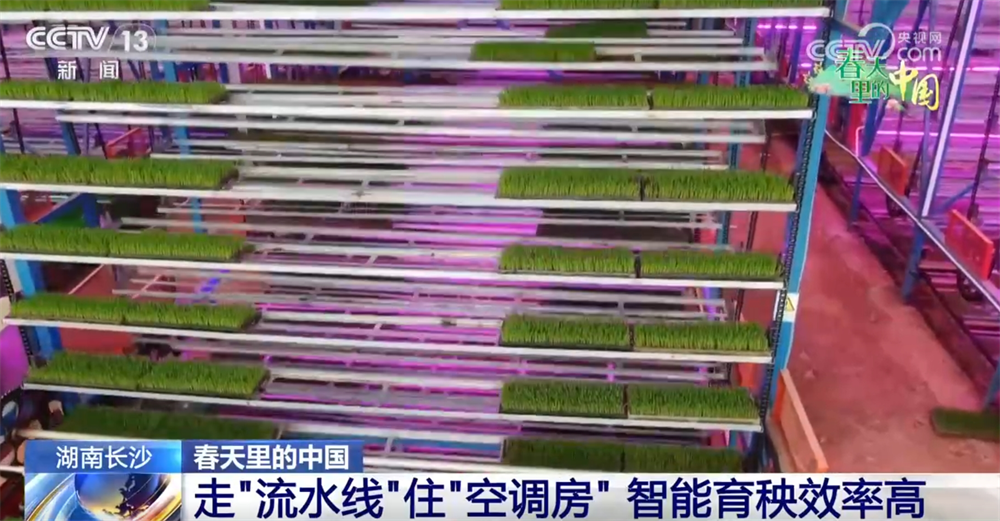 來(lái)到這個(gè)育秧車間,我們可以看到現(xiàn)在的秧苗都已經(jīng)坐上電梯了。在立體循環(huán)育秧架上,一盤盤綠油油的秧苗坐著升降梯輪流接受光照。架子上還裝有智能傳感器,把溫度、濕度等信息實(shí)時(shí)顯示在大屏上。同時(shí),還可以用手機(jī)進(jìn)行遠(yuǎn)程操控,根據(jù)秧苗長(zhǎng)勢(shì)自動(dòng)進(jìn)行補(bǔ)光、噴淋。