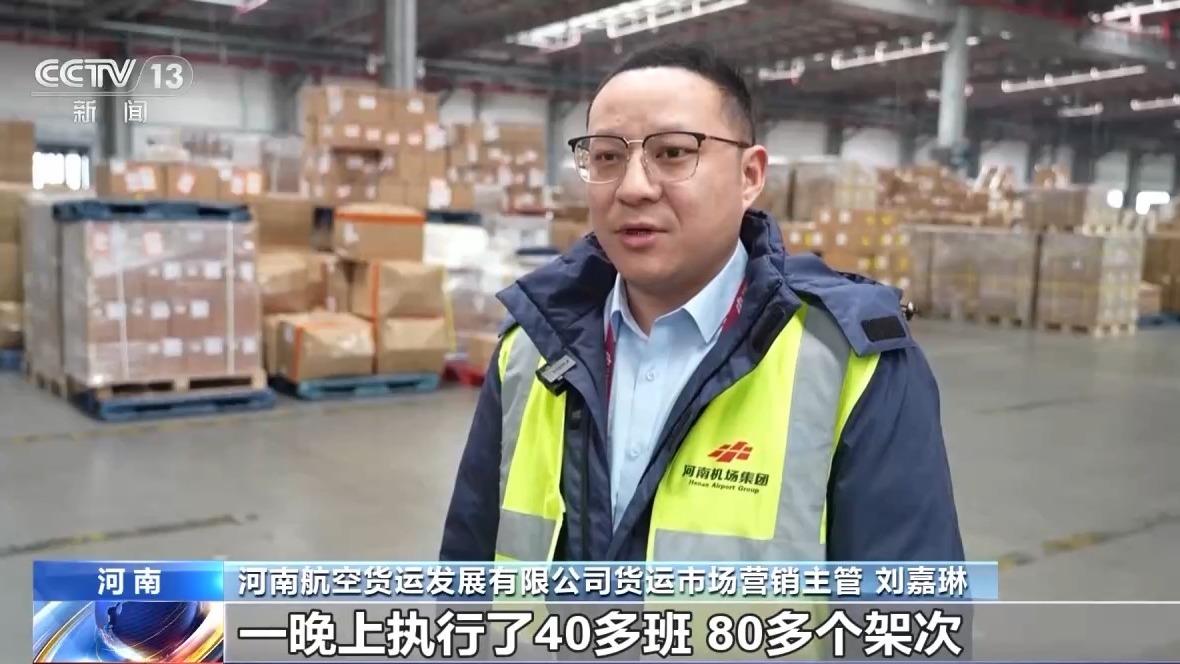 河南航空貨運(yùn)發(fā)展有限公司貨運(yùn)市場營銷主管 劉嘉琳:最繁忙的時(shí)候,一晚上執(zhí)行了40多班,80多個(gè)架次。每一個(gè)環(huán)節(jié)、每個(gè)時(shí)間節(jié)點(diǎn)我們都有監(jiān)控,哪個(gè)節(jié)點(diǎn)出現(xiàn)問題了,耽擱的時(shí)間比較長了,后臺對現(xiàn)場進(jìn)行提醒。高峰期加派人員,大大提高了作業(yè)效率。