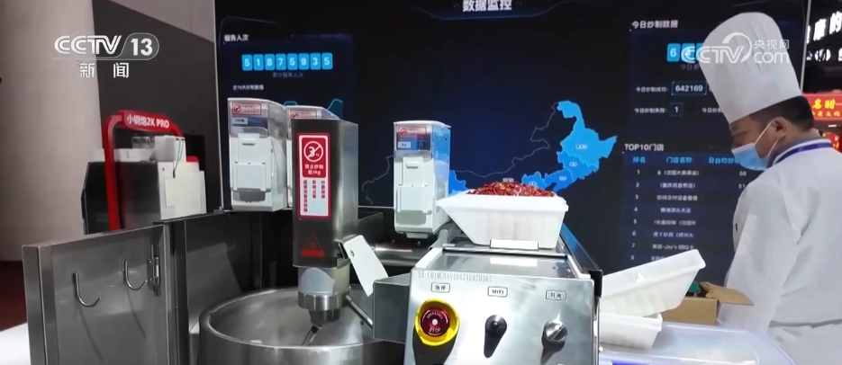 記者在春糖會首次設立的人工智能設備專區(qū)看到,應用AI模型的新裝備正加速進入餐飲食品和大健康領域。這個橡鹿機器人還在現場亮出“絕活”,三五分鐘就炒出了四川辣子雞和麻婆豆腐。