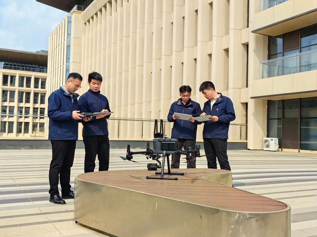 中國星網(wǎng)員工對無人機開展測試工作(3月28日攝)。新華社記者 齊雷杰 攝
