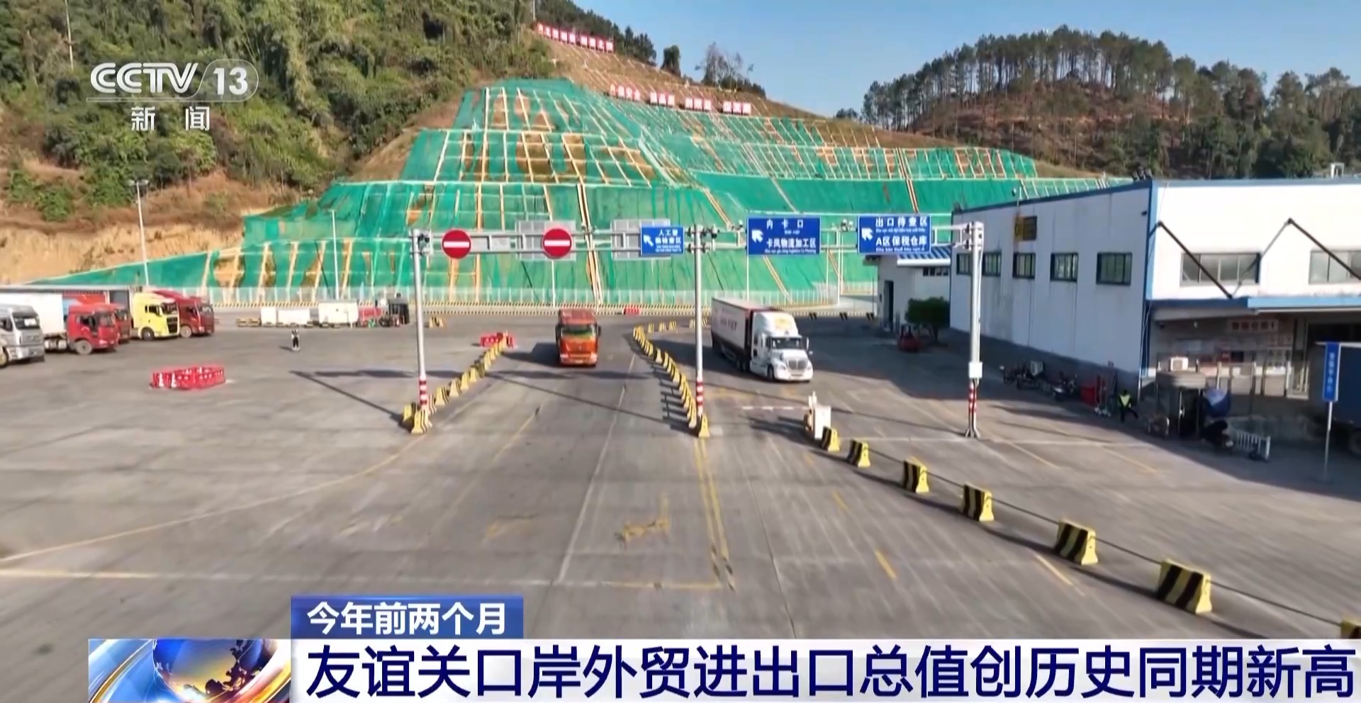 據(jù)友誼關(guān)海關(guān)統(tǒng)計,今年前兩個月,經(jīng)友誼關(guān)口岸進出口貨值728.9億元,同比增長10.9%,創(chuàng)歷史新高;進出口貨運量85萬噸,同比增長38.3%。進出境車輛11.4萬輛,同比增長10.2%。