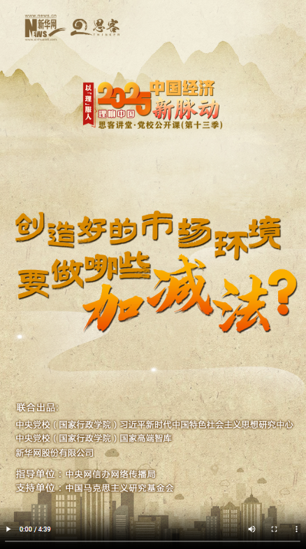 新一季“思客講堂·黨校公開課”《理響中國·以理服人|2025中國經(jīng)濟(jì)新脈動》,帶你讀懂2025年經(jīng)濟(jì)工作重點。2025年開年以來,杭州“六小龍”刷屏全網(wǎng),掀起科創(chuàng)熱潮。究其原因,離不開當(dāng)?shù)亓己玫臓I商環(huán)境??梢哉f,好的市場環(huán)境,既是城市競爭的關(guān)鍵性“軟實力”,也是經(jīng)濟(jì)高質(zhì)量發(fā)展的“硬支撐”。創(chuàng)造好的市場環(huán)境要做哪些“加減法”?如何充分激發(fā)各類經(jīng)營主體活力?中央黨校(國家行政學(xué)院)經(jīng)濟(jì)學(xué)教研部講師王松對此進(jìn)行解讀。