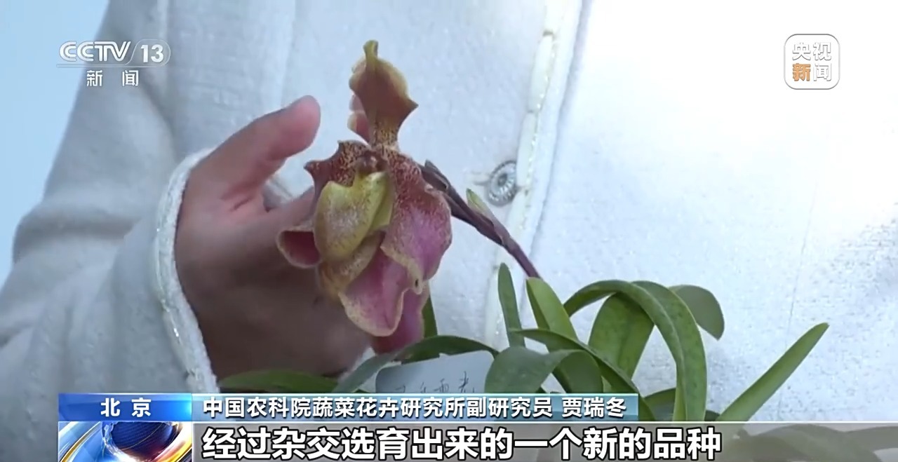 中國農(nóng)科院蔬菜花卉研究所副研究員 賈瑞冬:我們所做的工作就是怎么把物種繁殖利用起來。比如同色兜蘭和帶葉兜蘭經(jīng)過雜交選育出來的一個新的品種“靈秀霞光”,它的花兼具了同色兜蘭和帶葉兜蘭的優(yōu)點,開不止一朵花,花瓣還比較厚,花比較大,花期會比較長。
