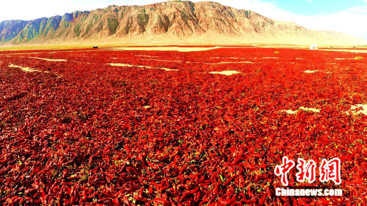 戈壁灘成晾曬紅辣椒場(chǎng)地。楊志榮 攝