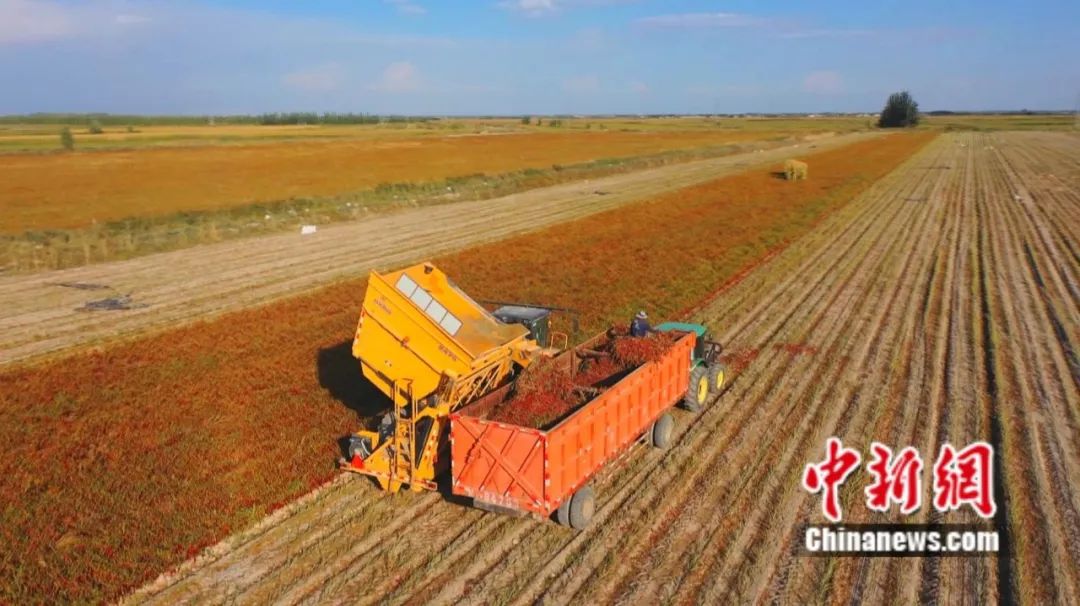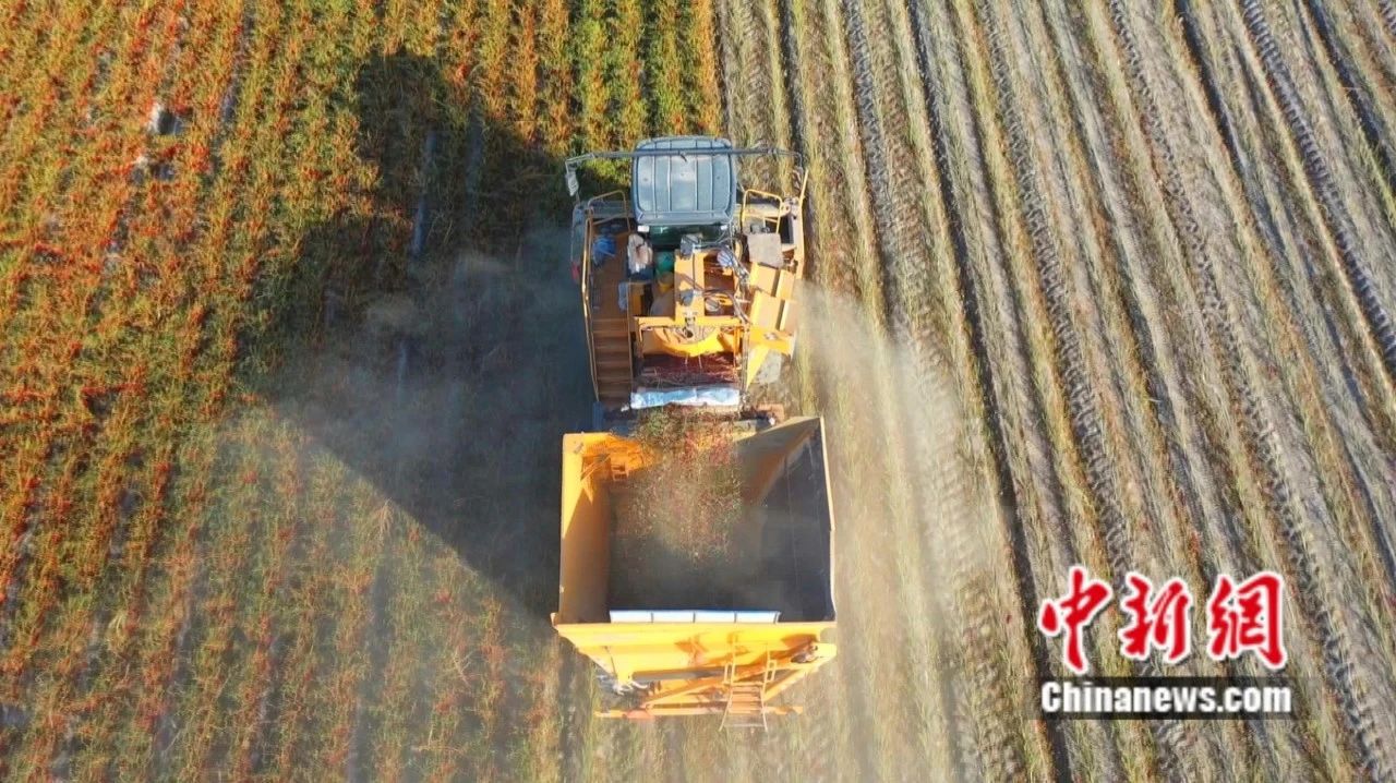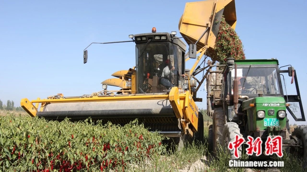 焉耆縣機(jī)械采收工業(yè)色素辣椒。楊志榮 攝