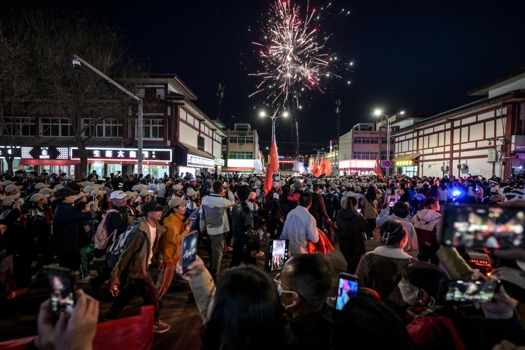 4月3日晚上8點左右,學生結束徒步返回校園,家長和市民熱情迎接。