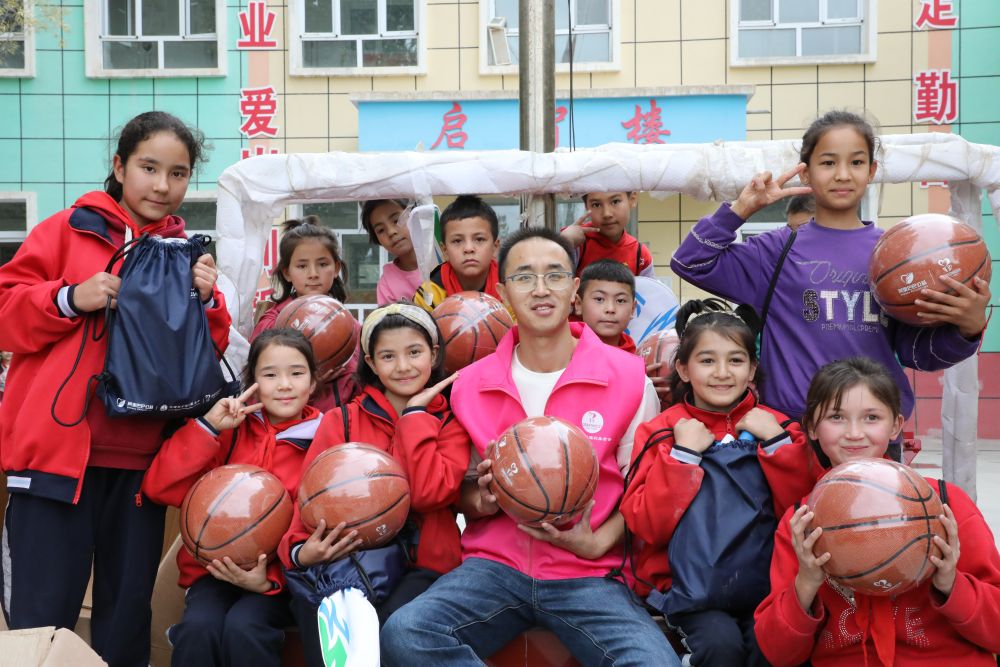 “上個(gè)學(xué)期曹永祺給我們學(xué)校聯(lián)系捐贈(zèng)了一批體育器材。”阿克陶縣皮拉勒鄉(xiāng)阿克提其村小學(xué)4年級(jí)2班班主任米娜瓦爾·巴拉提江說,“現(xiàn)在我們學(xué)校的學(xué)生基本上都認(rèn)識(shí)他,學(xué)生也特別樂意拉著他一起玩?!?/p>