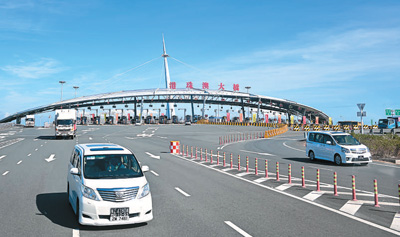 圖為車輛經(jīng)港珠澳大橋抵達珠海。中新社記者 陳驥旻攝
