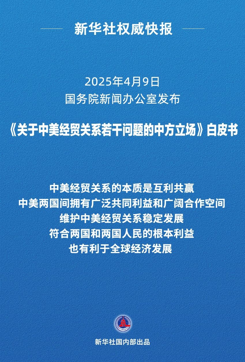 國務(wù)院新聞辦公室4月9日發(fā)布《關(guān)于中美經(jīng)貿(mào)關(guān)系若干問題的中方立場(chǎng)》白皮書,澄清中美經(jīng)貿(mào)關(guān)系事實(shí),闡明中方對(duì)相關(guān)問題的政策立場(chǎng)。