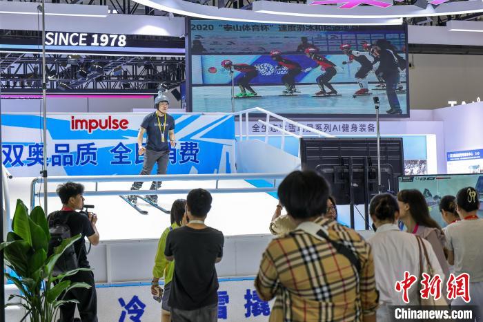 4月11日,第五屆中國(guó)國(guó)際消費(fèi)品博覽會(huì)即將開展,企業(yè)推出具有AI功能的滑雪模擬機(jī)。中新社記者 駱云飛 攝