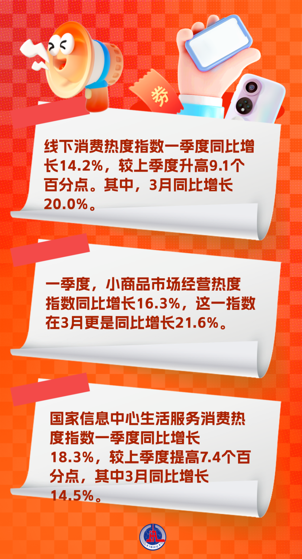 數(shù)據(jù)顯示,一季度,我國消費(fèi)市場亮點(diǎn)紛呈,呈現(xiàn)向好態(tài)勢。從線下消費(fèi)來看,國家信息中心線下消費(fèi)熱度指數(shù)一季度同比增長14.2%,較上季度升高9.1個百分點(diǎn)。其中,3月同比增長20.0%,比前兩個月高出4.7個百分點(diǎn),增速持續(xù)攀升。