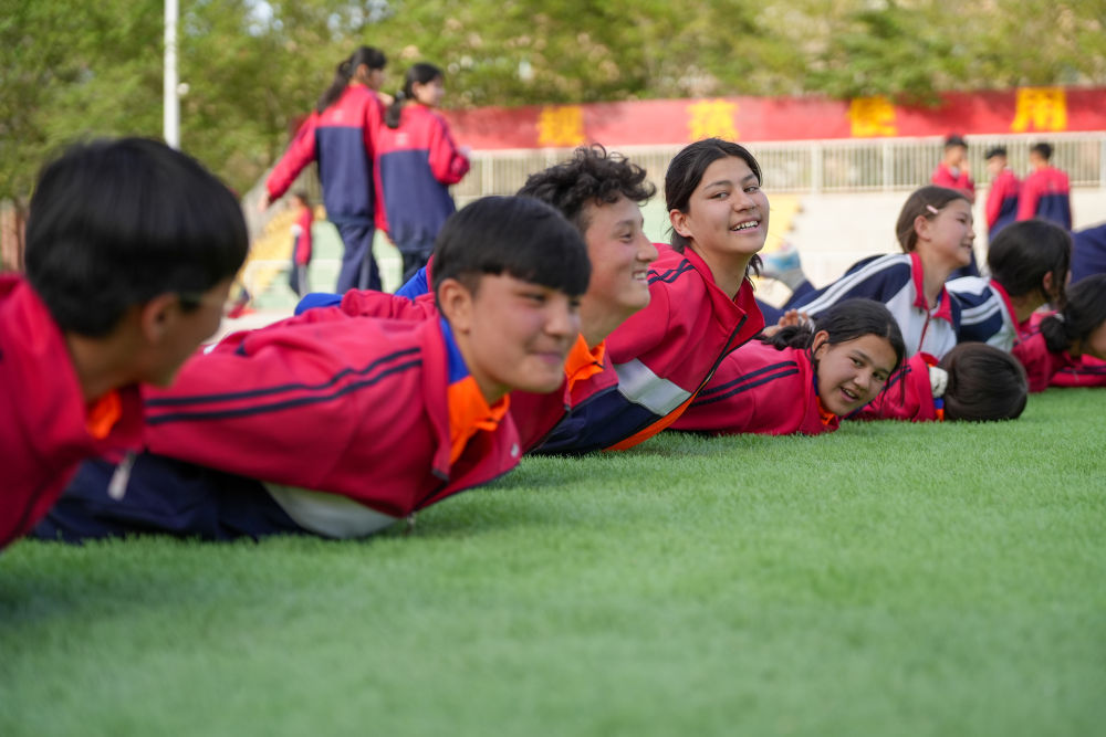 ↑4月10日,在阿圖什市硝魯克中學,艾妮再進行訓練。新華社記者 徐宏巖 攝