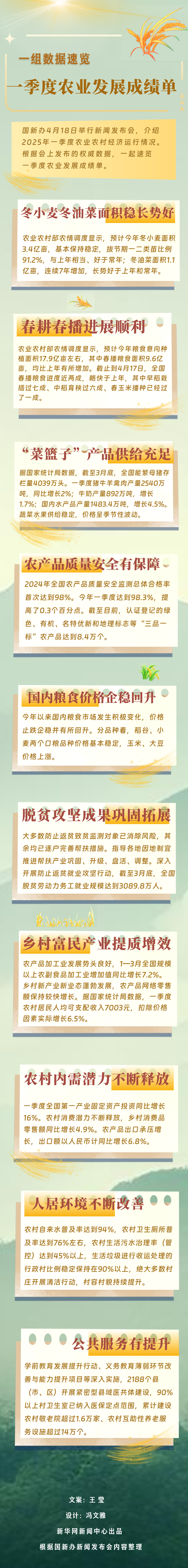 一組數(shù)據(jù)速覽一季度農(nóng)業(yè)發(fā)展成績(jī)單
