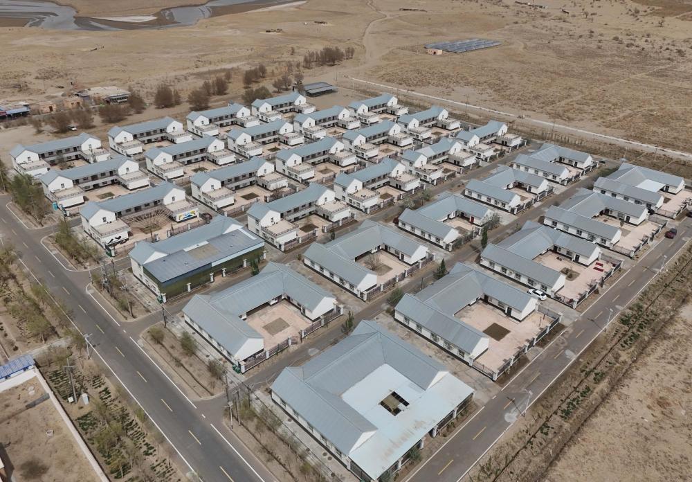 新疆于田縣達里雅布依鄉(xiāng)新村“藏身”于這片沙海。民房齊整氣派,不遠處就是高大延綿的沙丘。