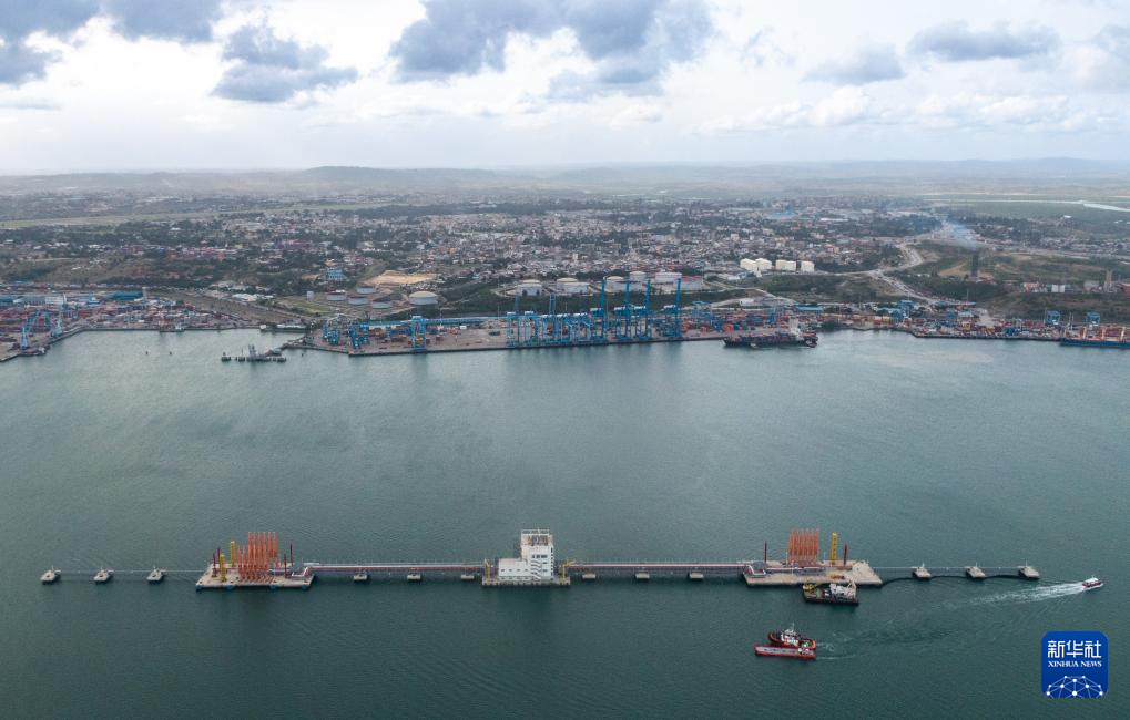 這是2024年8月15日在肯尼亞蒙巴薩拍攝的油碼頭和蒙巴薩港(無(wú)人機(jī)照片)。 新華社記者 王冠森 攝