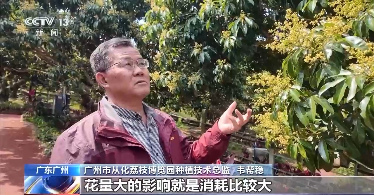 廣州市從化荔枝博覽園種植技術(shù)總監(jiān) 韋幫穩(wěn):今年花量比較大,花量大的話消耗比較大,所以我們說我們利用飛鳥給我們預(yù)警,就會告訴我們多少花量比較合適。既能達到豐產(chǎn),又能達到優(yōu)質(zhì)。