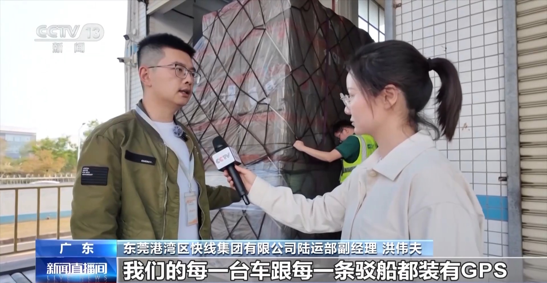 東莞港灣區(qū)快線集團有限公司陸運部副經理 洪偉夫:我們的每一臺車跟每一條駁船都裝有GPS,其中車輛裝有電子關鎖,駁船的貨艙有紅外警報,香港海關和內地海關可以在行駛過程中,對這些貨物進行遠程監(jiān)管。
