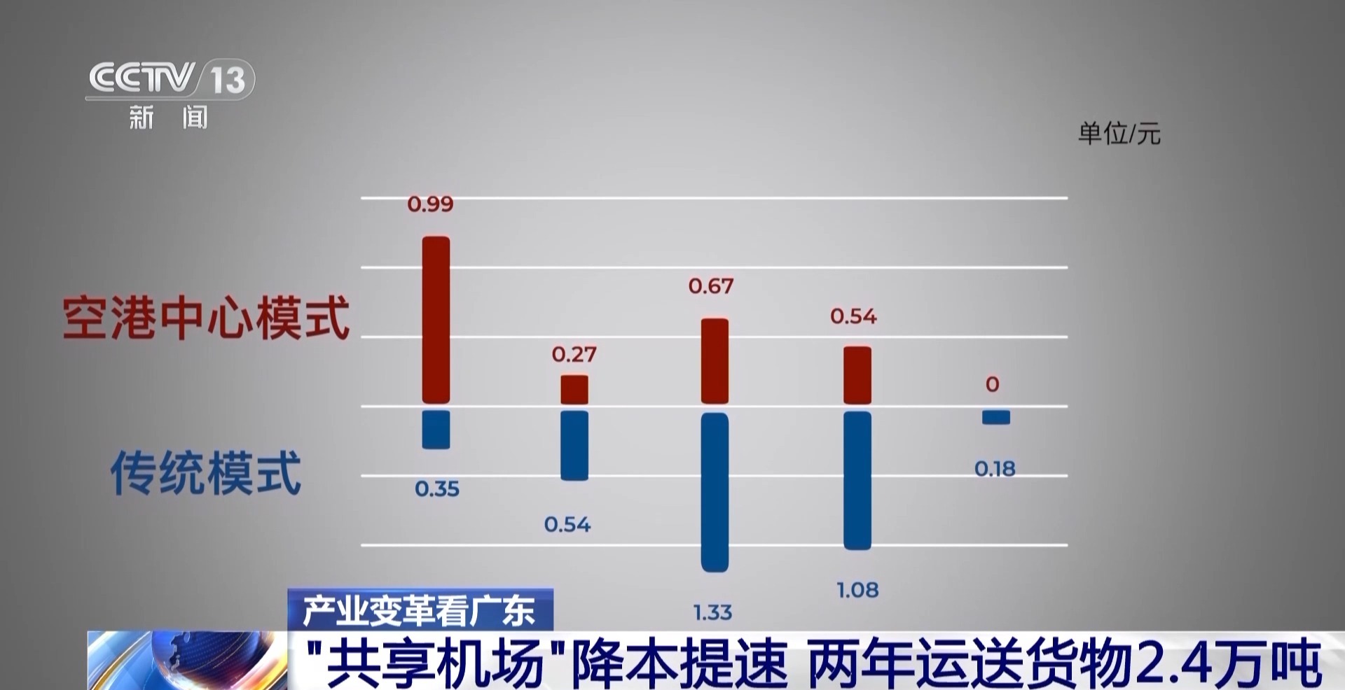 貨運代理商給記者算了一筆賬,傳統(tǒng)模式每千克貨物總費用3.47元,空港中心模式只需2.47元,每公斤貨物能省1塊錢,物流成本降低約30% 。