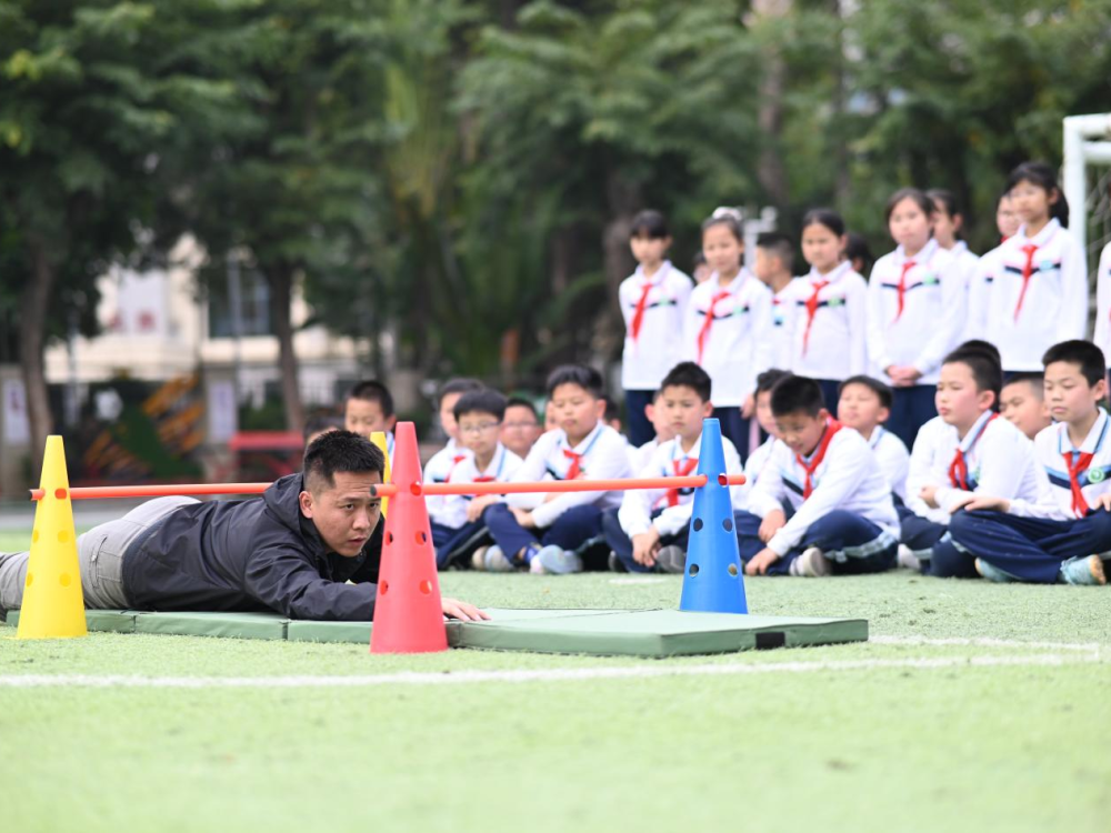 ↑“兵教師”陳翼桁在學(xué)校開展特色教學(xué)。蔡家榕 攝