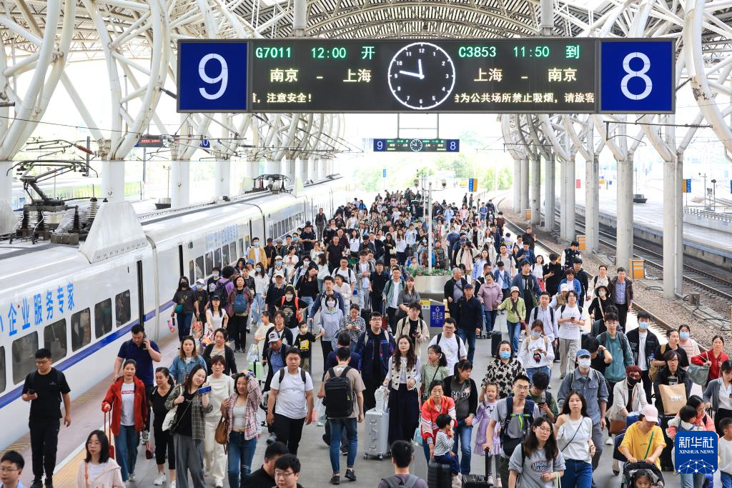 4月30日,旅客在南京火車站下車出站。新華社發(fā)(蘇陽 攝)