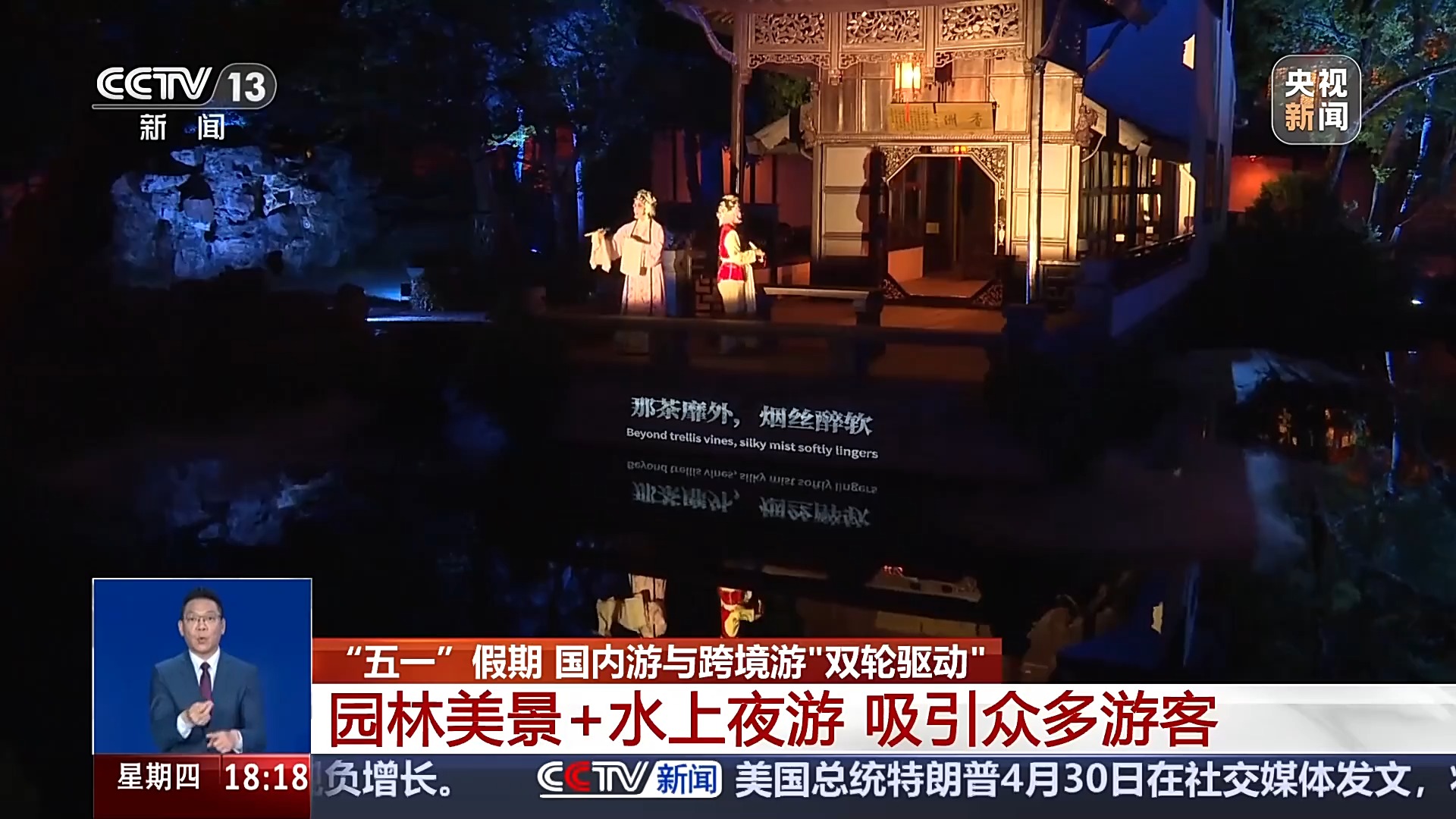 “五一”期間,作為旅游熱門城市的蘇州也迎來了大客流。在最具江南韻味的蘇州老城區(qū),在全息投影等技術(shù)支持下,蘇州園林夜游、河畔人家水上游等項目受到游客歡迎。