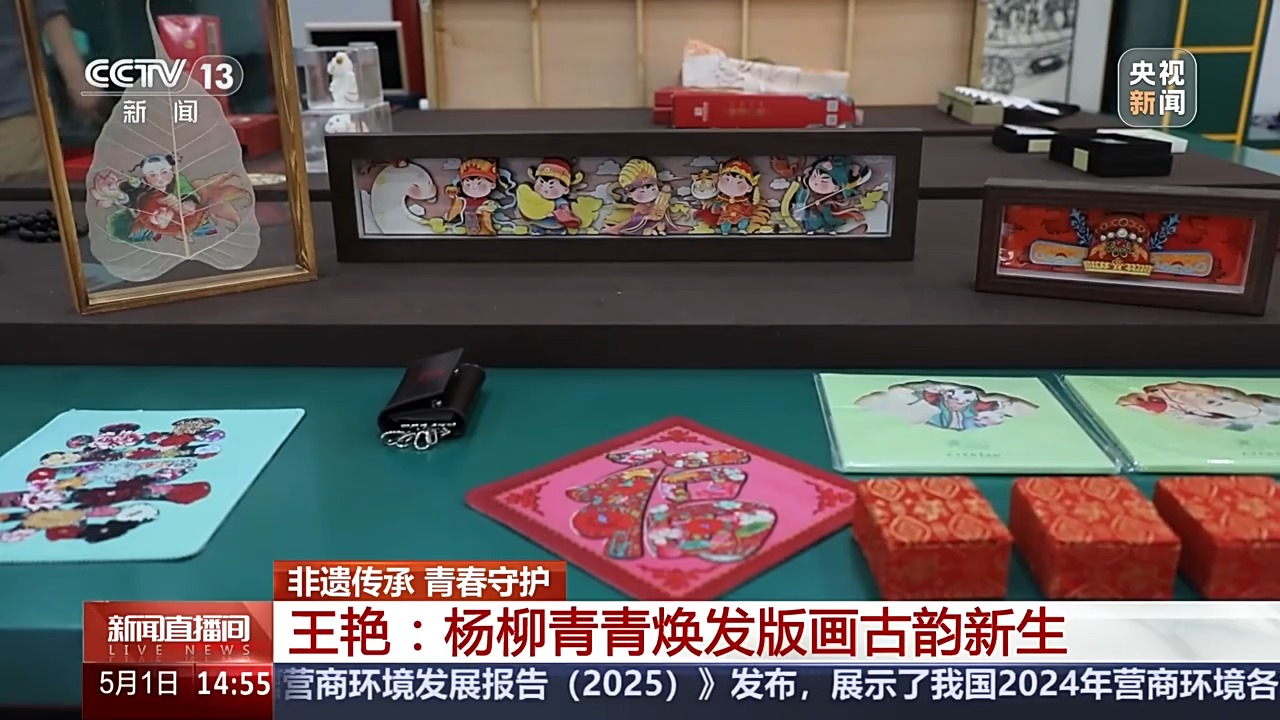 王艷在“老版復(fù)生”過(guò)程中,拆解傳統(tǒng)技法,比如畫訣中短胳膊短腿是多短?小鼻子大眼睛的比例怎樣會(huì)更好?她一一詳細(xì)記錄,貢獻(xiàn)了青年傳承人的“新民間經(jīng)驗(yàn)”。如今,古版年畫中的楊柳青元素也被開發(fā)成各式新潮的文創(chuàng)產(chǎn)品,“過(guò)年才貼的畫”變成了“身邊常見的畫”,讓年輕的消費(fèi)者愛不釋手。