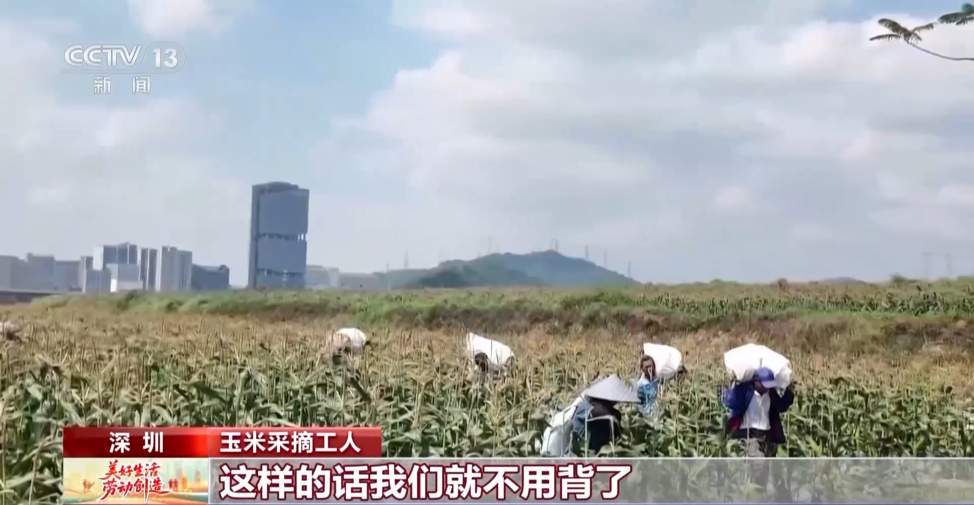 總臺央視記者 張春玲:在深圳光明區(qū),2000畝的玉米地都已經(jīng)成熟了,這次我的工作當(dāng)中有了一個新搭子——采摘小車。