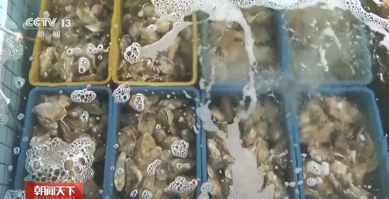 總臺央視記者 李嘯虎:在國家農業(yè)產業(yè)強鎮(zhèn)廣東陽西程村鎮(zhèn),“五一”期間,這里的生蠔迎來大量上市。這片占地六萬多畝的生蠔養(yǎng)殖基地里,養(yǎng)殖戶正從水下收獲一排排成熟的生蠔,40多萬箱新捕撈的海鮮正從這里走上百姓的節(jié)日餐桌。