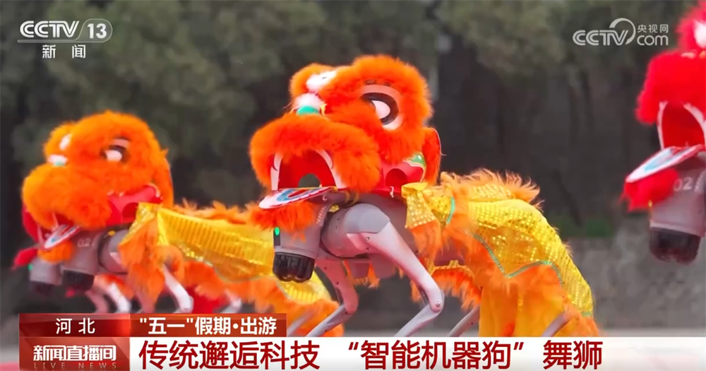 5月1日,在老龍頭景區(qū),醒獅技藝與智能機器狗的互動表演《智舞雄獅》吸引了大批游客駐足、參與,4臺搭載智能交互系統(tǒng)的機器獅與醒獅隊同臺獻藝,現(xiàn)場游人沉浸式體驗“長城+科技”的文旅新產(chǎn)品。