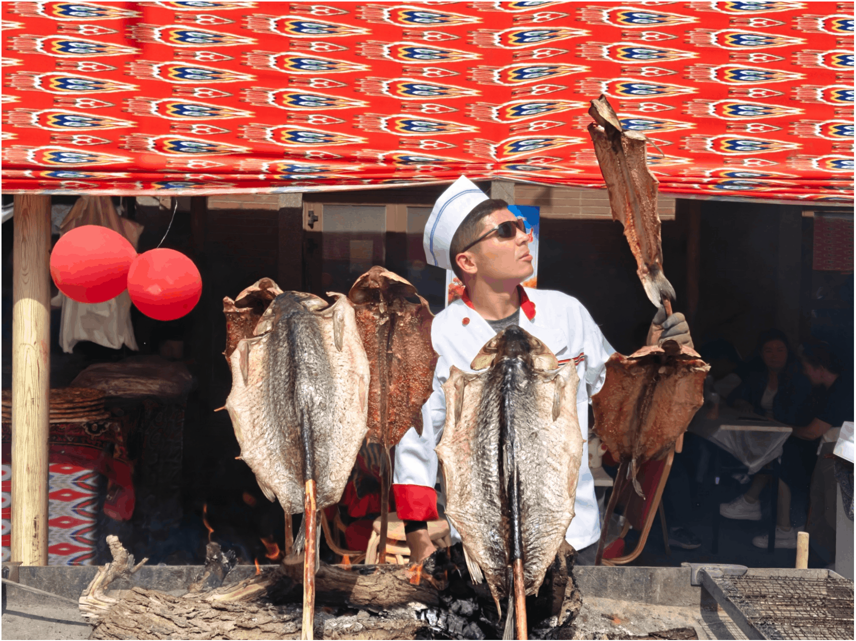 以“烤”為筆、以“味”為墨,2025新疆·尉犁第十二屆羅布人民俗燒烤季繪就一幅熱鬧非凡、充滿地方特色的鮮活畫卷,吸引全疆乃至全國游客共赴一場美味之約。百余個(gè)燒烤攤位沿青石板路在達(dá)西馕街有序排開,胡楊木炭在烤爐中明明滅滅,將印著艾德萊斯紋樣的遮陽棚映成流動(dòng)的彩緞。本屆燒烤季活動(dòng)整合全縣8個(gè)鄉(xiāng)鎮(zhèn)的特色美食與文旅資源,帶動(dòng)200余戶農(nóng)牧民增收,讓烤肉、烤鴿子、烤魚等“鄉(xiāng)味”變身“網(wǎng)紅”,推動(dòng)“舌尖經(jīng)濟(jì)”向“品牌經(jīng)濟(jì)”不斷升級。
