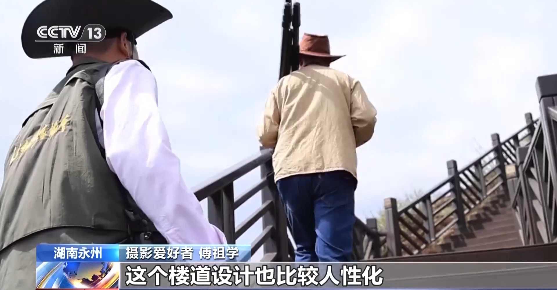 攝影愛好者 傅祖學(xué):我們?cè)谟^鳥之余,還可以順著樓道爬到山頂看風(fēng)景,這個(gè)樓道設(shè)計(jì)也比較人性化,每隔幾十米就有一個(gè)休憩的平臺(tái),爬累了就休息一會(huì)兒。