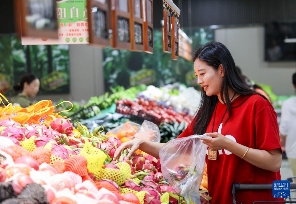 5月10日,消費者在山東省濱州市陽信縣一家超市選購水果。新華社發(fā)(初寶瑞攝)