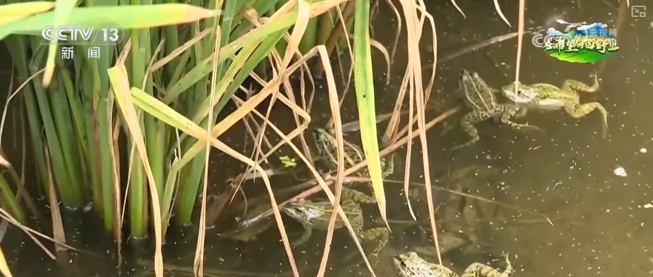 小鴨子們喜歡吃稻谷,它們會不會把稻田里的谷子也吃掉?為了防止這樣的情況發(fā)生,這里采用的模式是“鴨蛙稻”模式,5月放鴨、7月放蛙,在水稻進入抽穗期,也就是有稻谷的時候,15萬只小青蛙就會來接力管理這片農(nóng)田,由它們來捕食害蟲,替代殺蟲劑。