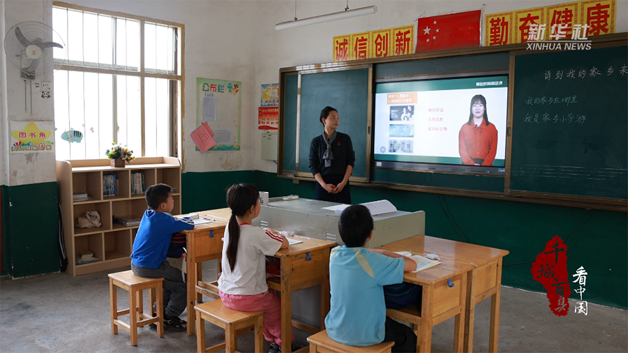 圖為在湖南省祁陽市文明鋪鎮(zhèn)中心小學(xué),師生通過遠(yuǎn)程課程學(xué)習(xí)。