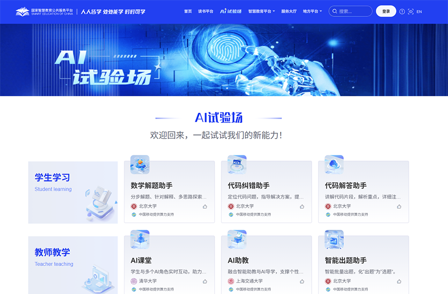 圖為國家智慧教育公共服務(wù)平臺(tái)上的“AI試驗(yàn)場”板塊