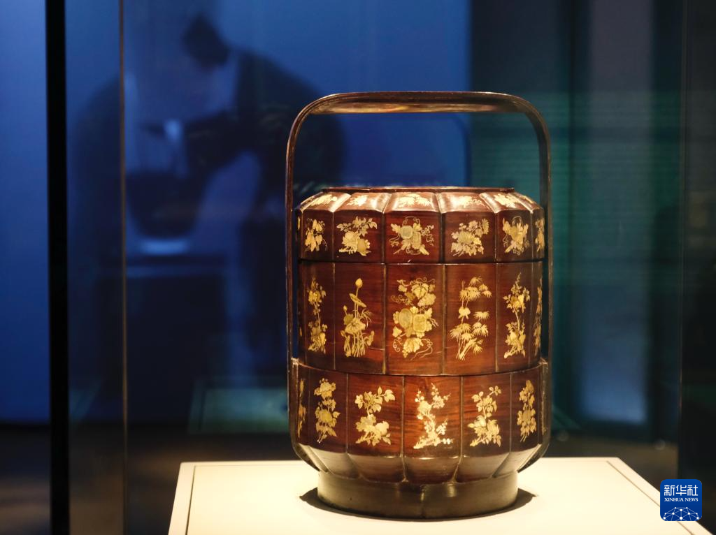 一位參觀者輕聲說:“古代的攢盒很像如今的全盒,一下子就想起了奶奶的點(diǎn)心匣子?!?/p>