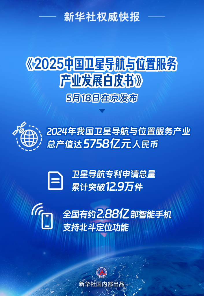 5月18日在京發(fā)布的《2025中國衛(wèi)星導航與位置服務產業(yè)發(fā)展白皮書》顯示,2024年我國衛(wèi)星導航與位置服務產業(yè)總產值達5758億元人民幣,同比增長7.39%;衛(wèi)星導航專利申請總量累計突破12.9萬件,繼續(xù)保持全球領先……